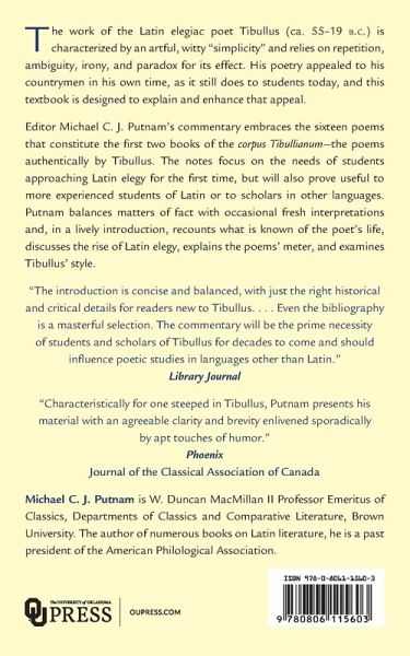 Volume 3 in the American Philological Association Series. The work of the Latin elegiac poet Tibullus (c. 55-19 b.c.) is characterized by an artful, witty "simplicity," and it relies on repetition, ambiguity, irony, and paradox for its effect. His poetry appealed to his countrymen in his own time, as it still does to students today, and this textbook is designed to explain and enhance that appeal. The commentary presented here is limited to the sixteen poems which comprise the first two books of the corpus Tibullianum, that is, to poems authentically by Tibullus. The notes focus on the needs of students approaching Latin elegy for the first time, but they will also prove useful to the more experienced student of Latin or to scholars in other languages. The editor has tried to balance matters of fact with occasional fresh interpretations. One introduction records what is known of the poet's life and discusses the rise of Latin elegy. The meter of the poems is explained, and Tibullus' style is examined.