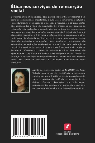 Os termos ética, ética aplicada, ética profissional e ethos profissional, bem como as competências importantes, a cultura e a compreensão cultural, a interculturalidade, a empatia, as emoções, a motivação e os preconceitos são apresentados a título de introdução. Os processos nos serviços de reinserção são explicados e considerados no contexto das competências, bem como os requisitos e desafios no que respeita à relevância ética e à sistemática normativa, e é discutida a reflexão ética de acordo com o ethos profissional. As várias dimensões dos serviços de estágio numa perspetiva ética são analisadas e os desafios, mas também as contradições, são salientados. As aspirações estabelecidas, em particular, pela declaração de missão dos serviços de reinserção e as normas éticas do trabalho social na Áustria são reflectidas no contexto da realidade da prática. Além disso, são apresentadas a aquisição e a melhoria das competências no contexto da formação e do aperfeiçoamento profissional no que respeita aos aspectos éticos. Por último, as questões são resumidas e respondidas numa conclusão.