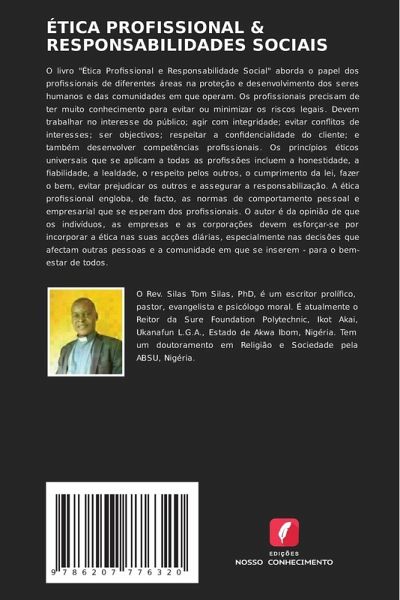 O livro "Ética Profissional e Responsabilidade Social" aborda o papel dos profissionais de diferentes áreas na proteção e desenvolvimento dos seres humanos e das comunidades em que operam. Os profissionais precisam de ter muito conhecimento para evitar ou minimizar os riscos legais. Devem trabalhar no interesse do público; agir com integridade; evitar conflitos de interesses; ser objectivos; respeitar a confidencialidade do cliente; e também desenvolver competências profissionais. Os princípios éticos universais que se aplicam a todas as profissões incluem a honestidade, a fiabilidade, a lealdade, o respeito pelos outros, o cumprimento da lei, fazer o bem, evitar prejudicar os outros e assegurar a responsabilização. A ética profissional engloba, de facto, as normas de comportamento pessoal e empresarial que se esperam dos profissionais. O autor é da opinião de que os indivíduos, as empresas e as corporações devem esforçar-se por incorporar a ética nas suas acções diárias, especialmente nas decisões que afectam outras pessoas e a comunidade em que se inserem - para o bem-estar de todos.