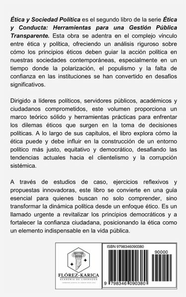"Ética y Sociedad Política" es el segundo volumen de la serie "Ética y Conducta: Herramientas para una Gestión Pública Transparente", una colección diseñada para explorar y profundizar en los principios éticos que deben guiar la acción política y administrativa en las sociedades contemporáneas. En un mundo cada vez más polarizado y desafiante, la ética emerge como un pilar fundamental para fortalecer la democracia, la administración pública y las relaciones internacionales. Este libro ofrece una reflexión integral sobre cómo los valores éticos influyen en la construcción de sociedades justas y equitativas. A través de seis capítulos, el autor aborda temas esenciales como: * Ética y democracia: Explora los principios éticos que sustentan los sistemas democráticos y los desafíos que enfrentan en la actualidad. * La ética en la administración pública: Analiza cómo los principios de transparencia, responsabilidad e integridad pueden fortalecer la gestión pública. * Dilemas éticos en la toma de decisiones: Proporciona herramientas y enfoques para resolver conflictos éticos en el ámbito público. * Ética en las relaciones internacionales: Examina los dilemas éticos globales y el papel de los líderes y organizaciones internacionales en la promoción de la paz y los derechos humanos. * Desafíos éticos contemporáneos: Aborda temas como la ética de la guerra, la ayuda humanitaria y la globalización, proponiendo marcos éticos para enfrentar los retos del siglo XXI. Este volumen combina teoría, estudios de caso y ejercicios reflexivos para proporcionar a líderes, servidores públicos, académicos y ciudadanos interesados herramientas prácticas para enfrentar los desafíos éticos de nuestra era. Es una guía esencial para quienes buscan promover una gestión política más ética y transparente, orientada al bienestar común. Sobre el autor: El autor, con una trayectoria destacada en la administración pública de su país (Panamá), es un defensor comprometido de la ética en la gestión pública. A través de esta serie, busca inspirar a los líderes y ciudadanos a adoptar un enfoque ético en sus decisiones, fortaleciendo así la confianza en nuestras instituciones.