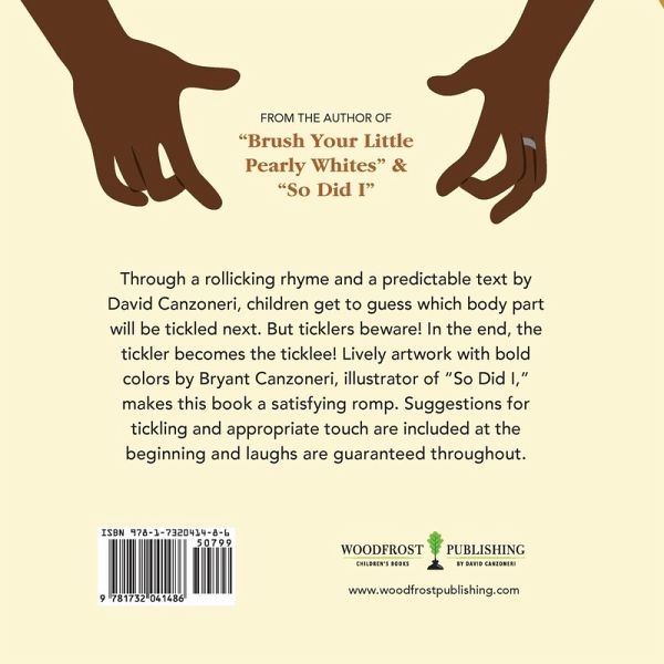 Through a rollicking rhyme and a predictable text by David Canzoneri, author of "Brush Your Little Pearly Whites", children get to guess which body part will be tickled next. But ticklers beware! In the end, the tickler becomes the ticklee! Lively artwork with bold colors by Bryant Canzoneri, illustrator of "So Did I", makes this book a satisfying romp. Suggestions for tickling and appropriate touch are included at the beginning and laughs are guaranteed throughout.