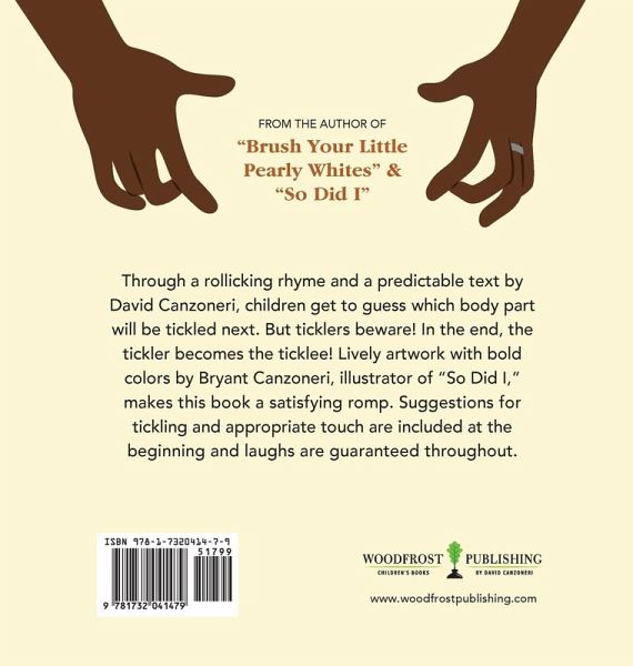 Through a rollicking rhyme and a predictable text by David Canzoneri, author of "Brush Your Little Pearly Whites", children get to guess which body part will be tickled next. But ticklers beware! In the end, the tickler becomes the ticklee! Lively artwork with bold colors by Bryant Canzoneri, illustrator of "So Did I", makes this book a satisfying romp. Suggestions for tickling and appropriate touch are included at the beginning, and laughs are guaranteed throughout.