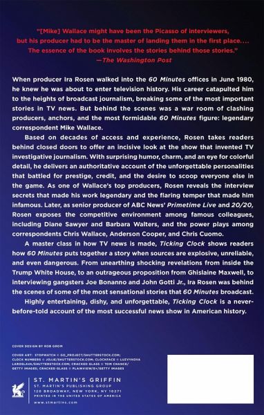 Two-time Peabody Award-winning writer and producer Ira Rosen reveals the intimate, untold stories of his decades at America's most iconic news show. It's a 60 Minutesstory on 60 Minutes itself. When producer Ira Rosen walked into the 60 Minutes offices in June 1980, he knew he was about to enter television history. His career catapulted him to the heights of TV journalism, breaking some of the most important stories in TV news. But behind the scenes was a war room of clashing producers, anchors, and the most formidable 60 Minutes figure: legendary correspondent Mike Wallace. Based on decades of access and experience, Ira Rosen takes readers behind closed doors to offer an incisive look at the show that invented TV investigative journalism. With surprising humor, charm, and an eye for colorful detail, Rosen delivers an authoritative account of the unforgettable personalities that battled for prestige, credit, and the desire to scoop everyone else in the game. As one of Mike Wallace's top producers, Rosen reveals the interview secrets that made Wallace's work legendary, and the flaring temper that made him infamous. Later, as senior producer of ABC News Primetime Live and 20/20, Rosen exposes the competitive environment among famous colleagues like Diane Sawyer and Barbara Walters, and the power plays between correspondents Chris Wallace, Anderson Cooper, and Chris Cuomo. A master class in how TV news is made, Rosen shows readers how 60 Minutes puts together a story when sources are explosive, unreliable, and even dangerous. From unearthing shocking revelations from inside the Trump White House, to an outrageous proposition from Ghislaine Maxwell, to interviewing gangsters Joe Bonanno and John Gotti, Jr., Ira Rosen was behind the scenes of some of 60 Minutes' most sensational stories. Highly entertaining, dishy, and unforgettable, Ticking Clock is a never-before-told account of the most successful news show in American history.