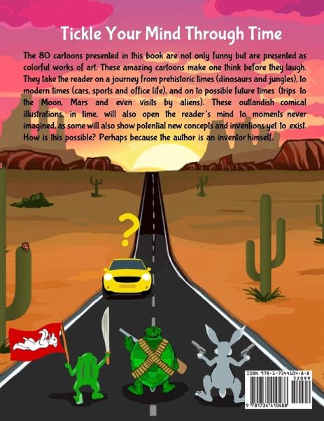 The 80 cartoons presented in this book are not only funny but are presented as colorful works of art. These amazing cartoons make one think before they laugh. They take the reader on a journey from prehistoric times (dinosaurs and jungles), to modern times (cars, sports and office life), and on to possible future times (trips to the Moon, Mars and even visits by aliens). These outlandish comical illustrations, in time, will also open the reader's mind to moments never imagined, as some will also show potential new concepts and inventions yet to exist. How is this possible? Perhaps because the…mehr