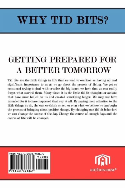 WHY TID BITS? Tid bits are the little things in life that we tend to overlook as having no real significant importance to us as we go about the process of living. We get so consumed trying to deal with or solve the big issues we have that we can easily forget what started them. Many times it is the little tid bit thoughts or actions that have snow balled on us and created something bigger. We may not have intended for it to have happened that way at all. By paying more attention to the little things we do, the way we think or act, or even what we believe we can begin the process of bringing about positive change. By changing our tid bit behaviors we can change the course of the day. Change the course of enough days and the course of life will be changed. GETTING READY FOR A BETTER TOMORROW.