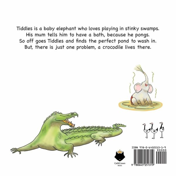 Tiddles is a baby elephant who loves playing in stinky swamps. His mum tells him to have a bath, because he pongs. So off goes Tiddles and finds the perfect pond to wash in. But, there is just one problem, a crocodile lives there.