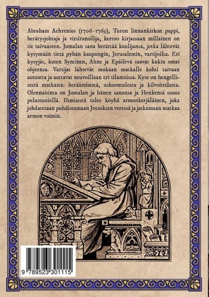 Abraham Achrenius, Turun linnankirkon ja Nousiaisten pappi, herätysjohtaja ja virsirunoilija, kertoo kirjassaan millainen on tie taivaaseen. Jumalan sana herättää kuulijansa, jotka lähtevät kysymään tietä pyhän kaupungin, Jerusalemin, vartijoilta. Eri kysyjät, kuten Syntinen, Ahne ja Epäilevä saavat kukin omat ohjeensa. Vartijat lähtevät mukaan matkalle kohti taivaan autuutta ja auttavat neuvoillaan eri tilanteissa. Kyse on hengellisestä matkasta: heräämisestä, uskoontulosta ja kilvoittelusta. Olennaisinta on Jumalan ja hänen sanansa ja Henkensä osuus pelastustiellä. Ihmisestä tulee köyhä armonkerjäläinen, joka johdatetaan puhdistumaan Jeesuksen veressä ja jatkamaan matkaa armon voimin. Jouko Talonen, kirkkohistorian professori emeritus, arvioi kirjaa: Teksti tuntuu kulkevalta, vanhan ajan kristinopilta, joka on vaarassa hukkua aikamme pinnallisuuteen. Se iskee Sanan sielun ytimeen, julistaa syntiä ja armoa. Vanha hengellinen kirjallisuus on syvällisempää kuin nykyajan pintakiilto. Tämä on siis vaikutelmani. Sanan tulee iskeä ja lyödä, haavoittaa ja sitten ja samalla tuoda kirkkaasti armo esille. J.T.