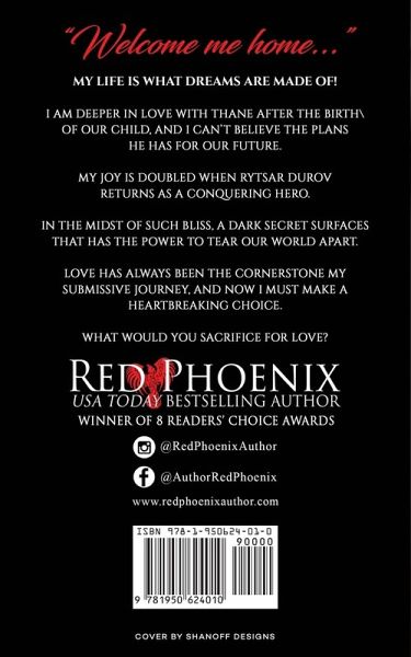 "Welcome me home..." My life is what dreams are made of! I am deeper in love with Thane after the birth of our child, and I can't believe the plans he has for our future. My joy Is doubled when Rytsar Durov returns as a conquering hero. In the midst of such bliss, a dark secret surfaces that has the power to tear our world apart. Love has always been the cornerstone my journey, and now I must make a heartbreaking choice. What would you sacrifice for love?