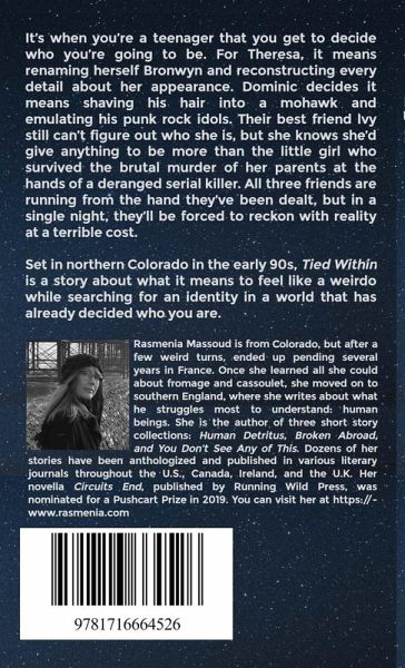 It's when you're a teenager that you get to decide who you're going to be. For Theresa, it means renaming herself Bronwyn and reconstructing every detail about her appearance. Dominic decides it means shaving his hair into a mohawk and emulating his punk rock idols. Their best friend Ivy still can't figure out who she is, but she knows she'd give anything to be more than the little girl who survived the brutal murder of her parents at the hands of a deranged serial killer. All three friends are running from the hand they've been dealt, but in a single night, they'll be forced to reckon with reality at a terrible cost. Set in northern Colorado in the early 90s, Tied Within is a story about what it means to feel like a weirdo while searching for an identity in a world that has already decided who you are.