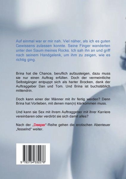 »Auf einmal war er mir nah. Viel näher, als ich es guten Gewissens zulassen könnte. Seine Finger wanderten unter den Saum meines Rocks. Ich sah ihn an und griff nach seinem Handgelenk, um ihm zu zeigen, wie es richtig ging.«Brina hat die Chance, beruflich aufzusteigen, dazu muss sie nur einen Auftrag erfüllen. Doch der vermeintliche Selbstgänger entpuppt sich als harter Brocken, dank der Auftraggeber Dan und Tom. Und Brina ist buchstäblich mittendrin.Doch kann einer der Männer mit ihr fertig werden? Denn Brina hat Vorlieben, mit denen man(n) klarkommen muss.Und kann sie Sex mit ihrem Auftraggeber mit ihrer Karriere vereinbaren oder verdirbt sie sich damit alles?