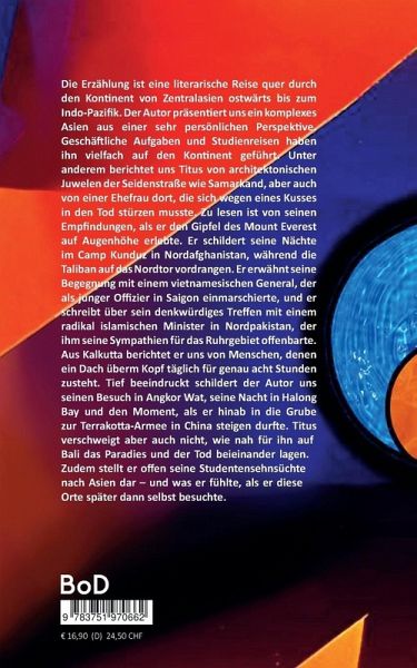 'Tief in Asien' hat der Autor sein Buch genannt, und der Untertitel 'Erzählung vom Sehen - Erleben - Verstehen' ist das Programm, wie er sich Asien nähert. Die Erzählung ist eine literarische Reise von Land zu Land quer durch den Kontinent von Zentralasien ostwärts bis zum Indo-Pazifik. Der Autor präsentiert uns ein vielschichtiges, komplexes Asien aus einer sehr persönlichen Perspektive. Geschäftliche Aufgaben und Studienreisen haben ihn vielfach auf den Kontinent geführt.Unter anderem berichtet uns Titus von architektonischen Juwelen der Seidenstraße wie Samarkand, aber auch von einer Ehefrau dort, die sich wegen eines Kusses in den Tod stürzen musste. Zu lesen ist von seinen Empfindungen, als er den Gipfel des Mount Everest auf Augenhöhe erlebt oder die prachtvollen Gebirgsketten von Pamir und Hindukush im Blick hatte. Er schildert seine Nächte im Camp Kunduz in Nordafghanistan, während die Taliban auf das Nordtor vordrangen. Er erwähnt seine Begegnung mit einem vietnamesischen General, der als junger Offizier in Saigon einmarschiert war, als die letzten Amerikaner vom Dach der Botschaft flüchteten. Titus erinnert sich lebhaft an sein Treffen mit einem radikalislamischen Minister in Nordpakistan, der ihm seine Sympathien für das Ruhrgebiet offenbarte. Der Autor berichtet uns aus Kalkutta von Menschen, denen ein Dach überm Kopf täglich für genau acht Stunden zusteht. Tief beeindruckt schildert er seinen Besuch in Angkor Wat, seine Nacht in Halong Bay und den Moment, als er hinab in die Grube zur Terrakotta-Armee in China steigen durfte. Und Titus verschweigt auch nicht, wie nah für ihn auf Bali das Paradies und der Tod beieinander lagen. Zudem stellt er offen seine Jugendträume und Studentensehnsüchte nach Asien dar, und was er fühlte, als er diese mythischen Orte später dann selbst besuchte.Über die prägenden Begegnungen mit asiatischen Menschen verschiedener sozialer Herkunft hinaus geht es ihm um sein Erleben von Kulturphilosophie und Spiritualität in Asien, um die historischen Wurzeln des Kontinents und dessen dramatische Zeitgeschichte der letzten Dekaden. Ihn faszinieren die gewaltigen Naturschauspiele Asiens und und dessen einmalige Stätten des Weltkulturerbes.Ihn selbst, so glaubt der Autor, habe Asien in seiner Persönlichkeit verändert, zumindest aber markant geprägt. Wie, auch das wagt er in dem Buch zu analysieren. Leserinnen und Leser können das alles nachvollziehen, um danach vielleicht selbst die 'Herausforderung Asien' anzunehmen.