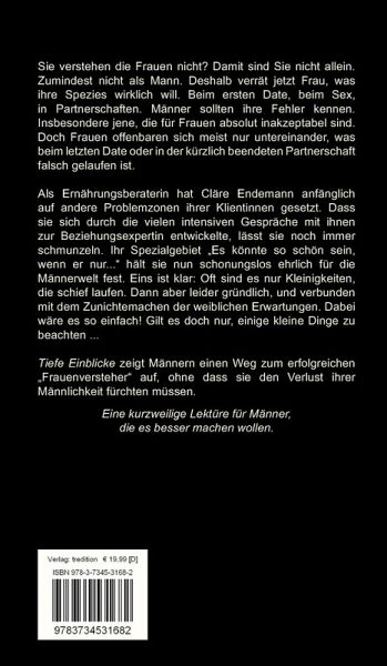 Als Ernährungsberaterin hat Cläre Endemann anfänglich auf andere Problemzonen ihrer Klientinnen gesetzt. Dass sie sich durch die vielen intensiven Gespräche mit ihnen zur Beziehungsexpertin entwickelte, lässt sie noch immer schmunzeln. Ihr Spezialgebiet "Es könnte so schön sein, wenn er nur..." hält sie nun schonungslos ehrlich für die Männerwelt fest. Eins ist klar: Oft sind es nur Kleinigkeiten, die schief laufen. Dann aber leider gründlich, und verbunden mit dem Zunichtemachen der weiblichen Erwartungen. Dabei wäre es so einfach! Gilt es doch nur, einige kleine Dinge zu beachten ...