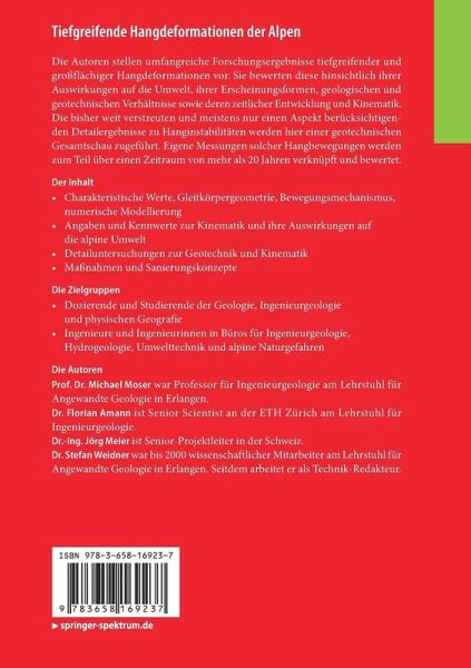 Die Autoren stellen umfangreiche Forschungsergebnisse tiefgreifender und großflächiger Hangdeformationen vor. Sie bewerten diese hinsichtlich ihrer Auswirkungen auf die Umwelt, ihrer Erscheinungsformen, geologischen und geotechnischen Verhältnisse sowie deren zeitlicher Entwicklung und Kinematik. Die bisher weit verstreuten und meistens nur einen Aspekt berücksichtigenden Detailergebnisse zu Hanginstabilitäten werden hier einer geotechnischen Gesamtschau zugeführt. Eigene Messungen solcher Hangbewegungen werden zum Teil über einen Zeitraum von mehr als 20 Jahren verknüpft und bewertet.
