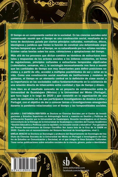 El tiempo es un componente central de la sociedad. En las ciencias sociales está consensuado asumir que el tiempo es una construcción social, resultante de la toma de decisiones guiada por ciertos principios culturales, normativos, éticos, ideológicos y jurídicos que tienen la función de construir una determinada arquitectura temporal que, con el tiempo, se va naturalizando por los actores sociales. Existen varias teorías sobre los usos, valoraciones y apropiaciones del tiempo. Más allá de los procesos que dictan cambios en términos de estructuras mentales y respuestas de los actores sociales a los órdenes existentes, en forma de regulaciones, principios culturales o estructuras temporales objetivadas (calendarios, semanas, etc.), la sociología necesariamente nos lleva a asumir que las cantidades de tiempo son muy importantes para definir posiciones sociales y, a partir de ello, acceder a múltiples posibilidades de ser y estar en la vida. Como una construcción social resultado de instituciones y modelos de gobierno, el tiempo es un elemento central en la definición de clase social, y su importancia en las sociedades radica fundamentalmente en la existencia de una relación directa de intercambio entre cantidad y tipo de tiempo y dinero. >Liliana I. Castañeda-Rentería es Doctora en Ciencias Sociales por el Centro de Investigaciones y Estudios Superiores en Antropología Social y maestra en Gestión y Políticas de la Educación Superior por la Universidad de Guadalajara. Docente investigadora en el Centro Universitario de la Ciénega de la Universidad de Guadalajara y miembro del Cuerpo Académico "Gestión Educativa y Políticas para la equidad y la inclusión social y educativa". Fue ganadora >Emília Araújo es Doctora en Sociología y profesora del Departamento de Sociología del Instituto de Ciencias Sociales de la Universidad del Minho en Portugal e investigadora del Centro de Estudios en Comunicación y Sociedad, en el que integra la línea Estudios Culturales. Tiene varias publicaciones sobre estudios sociales de la ciencia, género, poder e identidades.