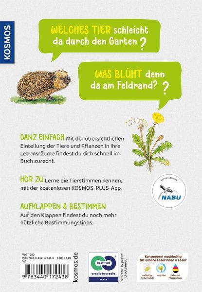 Der Naturführer für Kinder von KOSMOS: Welches Tier schleicht da durch den Garten? Was blüht am Feldrand? Und welcher Baum hat solche gezackten Blätter? Dieser umfassende Naturführer ist der perfekte Begleiter für Kinder und ihre Eltern auf allen Expeditionen durch die Natur. Mit detailreichen Zeichnungen, praktischen Bestimmungsklappen und einem Farbcode ermöglicht der Naturführer das schnelle Bestimmen von 250 heimischen Tier- und Pflanzenarten. Über die kostenlose KOSMOS-PLUS-App können Kinder 70 Tierstimmen ganz einfach anhören und so die Welt der Tiere noch besser kennenlernen. Auf jeder Seite finden sich zudem praktische Tipps sowie spannende Extras zum Mitmachen und Ausprobieren. Dieser Naturführer für Kinder ist besonders geeignet für junge Naturentdeckerinnen und Naturentdecker ab 8 Jahren und bietet nicht nur Wissen, sondern auch jede Menge Spaß beim Erkunden der Natur. Ein unverzichtbarer Naturführer, der Kindern die Schönheit und Vielfalt der heimischen Flora und Fauna näherbringt. KOSMOS - konsequent nachhaltig. Empfohlen vom NABU