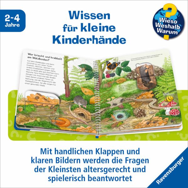 Wer guckt zwischen den Bäumen hervor? Was flattert da über die Lichtung? Welche Tiere krabbeln im Unterholz? In diesem Buch erfahren Kinder Spannendes über die Lebensweise von Waldbewohnern. Sie treffen Füchse und Wildschweine mit ihren Jungen, entdecken den Unterschied zwischen Reh und Hirsch und finden heraus, wer nachts im Wald wach ist. Mit Klappen schauen sie in die Spechthöhle und in den Fuchsbau, zudem erkunden sie einen skandinavischen Wald im verschneiten Winter. So viel Entdeckerspaß!