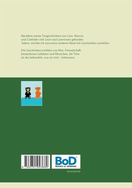 Nachdem meine Tiergeschichten von Caro, Marvin und Clothilde viele Leser und Leserinnen gefunden haben, möchte ich nun einen weiteren Band mit Geschichten vorstellen.Die Geschichten erzählen von Mut, Freundschaft, bestandenen Gefahren und Menschen, die Tiere als das behandeln, was sie sind - Lebewesen.