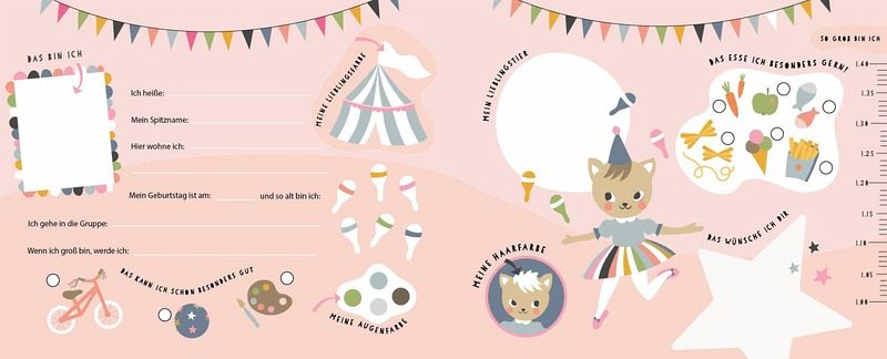 Eine fantastische Erinnerung an eine tolle Kindergartenzeit! Manege frei: Dieses witzig gestaltete Freundebuch mit 64 Seiten ist für alle Domteure, Clowns und Primaballerinen und ihre Kindergartenfreunde. Die wunderschön gestalteten Seiten mit tierisch-tollen Illustration können von den Kindern weitestgehend selbst und nur mit ein wenig Hilfe der Eltern ausgefüllt werden. Es wird gezeichnet, angekreuzt, ausgemalt und dabei gibt es noch superviel zu entdecken!