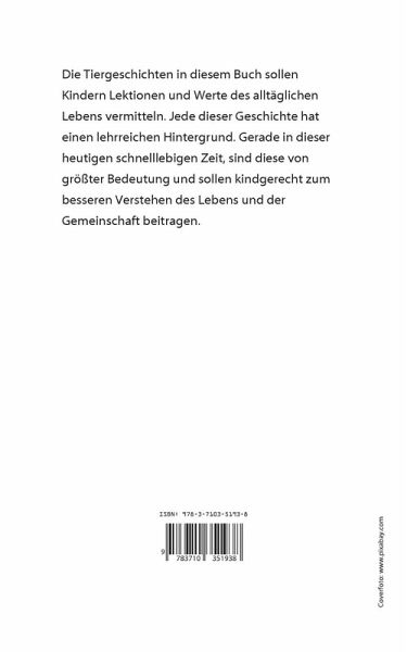 Dieses Buch soll Kindern die Werte der Lebens vermitteln. In kleinen Tiergeschichten wird beschrieben und verständlich gemacht, was im Leben zählt und welche Lektionen sie daraus lernen.