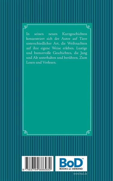 In seinen neuen Kurzgeschichten konzentriert sich der Autor auf Tiere unterschiedlicher Art, die Weihnachten auf ihre eigene Weise erleben. Lustige und humorvolle Geschichten, die Jung und Alt unterhalten und berühren. Zum Lesen und Vorlesen.
