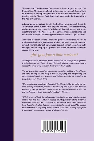 Tierra and the Seven Sisters is a fantastical story of the Earth's origins and re-awakening to Love. Non-fiction couched in a fictional setting, this adult story weaves through millions of years of history to the present day. It's told from the future to a circle of children, curious to learn how their ancestors awoke at this time through the battle of the Light and the dark. The children learned about the dawning of the Golden Age, and how a new era of enlightenment and super conscious awareness brought humanity back together again in unity, sharing and compassion, truth and honesty, love and harmony, peace and prosperity. It is to be explored as fiction while readers are encouraged to do their own research into the narrative shared.