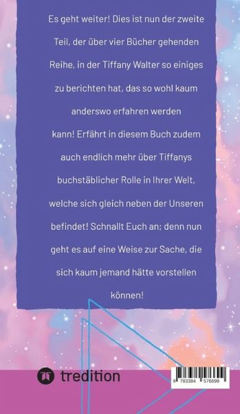 Es geht weiter! Nach "Das Wunderkind" ist dies nun die Fortsetzung von Tiffany Walters bewegender, spirituell orientierter Geschichte."Tiffany und Leonardo" knüpft dort an, wo "Das Wunderkind" geendet hat und es geht gleich von Anfang an VOLL ZUR SACHE! Ausserdem erfährt Tiffany nun, was Sie wirklich ist ... wobei dies wiederum "lediglich" der Anfang von etwas ist, dass selbst Tiffany sich so nicht hätte vorstellen können; zumindest nicht bewusst! In diesem Buch erfährt Ihr zudem auch, was es wirklich mit Leonardo auf sich hat!... lest ein weiteres mal, was Tiffany zu erzählen hat. - Es kommt einiges; das könnt Ihr glauben!
