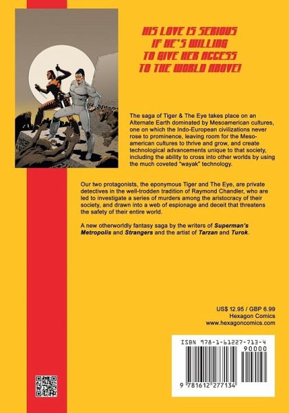 The saga of Tiger & The Eye takes place on an Alternate Earth dominated by Mesoamerican cultures, one on which the Indo-European civilizations never rose to prominence, leaving room for the Mesoamerican cultures to thrive and grow, and create technological advancements unique to that society, including the ability to cross into other worlds by using the much coveted "wayak" technology. Our two protagonists, the eponymous Tiger and The Eye, are private detectives in the well-trodden tradition of Raymond Chandler, who are led to investigate a series of murders among the aristocracy of their society, and drawn into a web of espionage and deceit that threatens the safety of their entire world. A new otherworldly fantasy saga by the writers of Superman’s Metropolis and Strangers and the artist of Tarzan and Turok.