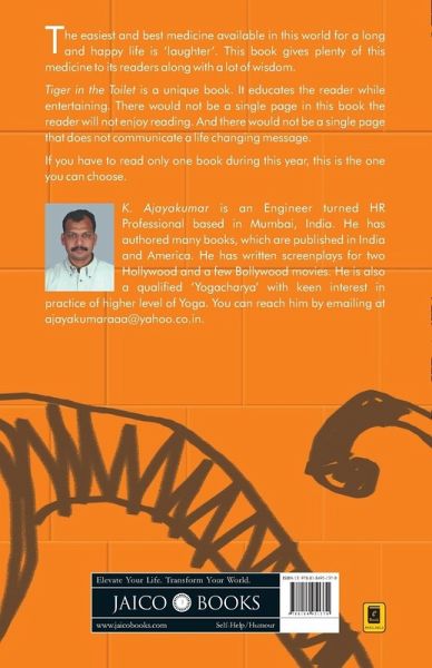 The easiest and best medicine available in this world for a long and happy life is 'laughter'. This book gives plenty of this medicine to its readers along with a lot of wisdom. Tiger in the Toilet is a unique book. It educates the reader while entertaining. There would not be a single page in this book the reader will not enjoy reading. And there would not be a single page that does not communicate a life changing message. If you have to read only one book during this year, this is the one you can choose.