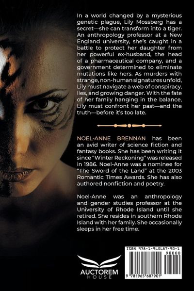 In a world changed by a mysterious genetic plague, Lily Mossberg has a secret-she can transform into a tiger. An anthropology professor at a New England university, she's caught in a battle to protect her daughter from her powerful ex-husband, the head of a pharmaceutical company, and a government determined to eliminate mutations like hers. As murders with strange, non-human signatures unfold, Lily 1must navigate a web of conspiracy, lies, and growing danger. With the fate of her family hanging in the balance, Lily must confront her past-and the truth-before it's too late.