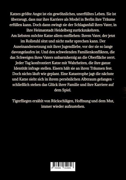 Katzes größte Angst ist ein gewöhnliches, unerfülltes Leben. Sie ist überzeugt, dass nur ihre Karriere als Model in Berlin ihre Träume erfüllen kann. Doch dann zwingt sie der Schlaganfall ihres Vaters, in ihre Heimatstadt Heidelberg zurückzukehren. Am liebsten möchte Katze allem entfliehen: Ihrem Vater, der jetzt im Rollstuhl sitzt und nicht mehr sprechen kann. Der Auseinandersetzung mit ihrer Jugendliebe, vor der sie so lange davongelaufen ist. Und den schwelenden Familienkonflikten, die das Schweigen ihres Vaters unbarmherzig an die Oberfläche zerrt. Jeder Tag konfrontiert Katze mit Wahrheiten, die ihre ganze Identität infrage stellen. Eisern hält sie an ihren Träumen fest. Doch nichts läuft wie geplant. Eine Katastrophe jagt die nächste und Katze sieht sich in ihrem persönlichen Albtraum gefangen - schließlich stehen das Glück ihrer Familie und ihre Karriere auf dem Spiel. Tigerfliegen erzählt von Rückschlägen, Hoffnung und dem Mut, immer wieder aufzustehen.