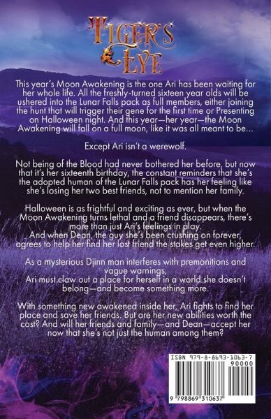 This Halloween will awaken the beast inside. This year's Moon Awakening is the one Ari has been waiting for her whole life. All the freshly-turned sixteen year olds will be ushered into the Lunar Falls pack as full members, either joining the hunt that will trigger their gene for the first time or Presenting on Halloween night. And this year-her year-the Moon Awakening will fall on a full moon, like it was all meant to be... Except Ari isn't a werewolf. Not being of the Blood had never bothered her before, but now that it's her sixteenth birthday, the constant reminders that she's the adopted human of the Lunar Falls pack has her feeling like she's losing her two best friends, not to mention her family. Halloween is as frightful and exciting as ever, but when the Moon Awakening turns lethal and a friend disappears, there's more than just Ari's feelings in play. And when Dean, the guy she's been crushing on forever, agrees to help her find her lost friend the stakes get even higher. As a mysterious Djinn man interferes with premonitions and vague warnings, Ari must claw out a place for herself in a world she doesn't belong-and become something more. With something new awakened inside her, Ari fights to find her place and save her friends. But are her new abilities worth the cost? And will her friends and family-and Dean-accept her now that she's not just the human among them?
