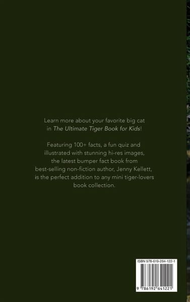 "Dive into the Exciting World of Tigers!" Get ready to embark on a thrilling journey into the world of tigers with The Ultimate Tiger Book for Kids by Jenny Kellett. This book is an exciting combination of facts, quizzes, and interactive learning that is sure to capture the attention of any child who loves tigers. Here's what you'll find inside: * Tiger Subspecies: Learn about the different subspecies of tigers, including the Sumatran tiger, Siberian tiger, Bengal tiger, South China tiger, Malayan tiger, and Indochinese tiger. * Tiger Facts: Discover over 100 incredible facts about tigers that will leave your child fascinated and educated. * Tiger Quiz: Test your child's knowledge with a fun quiz that covers everything they've learned about tigers. * Word Search Puzzle: Enjoy a bonus activity with a fun tiger word search puzzle With beautiful illustrations and over 25 spectacular tiger photos, this book is perfect for children aged 9+ who love tigers and want to learn more about these incredible creatures. Whether your child is an intermediate reader or a budding naturalist, this book is sure to spark their curiosity and imagination. So don't miss out on this opportunity to inspire your child's love of learning and nature. So why wait? Buy The Ultimate Tiger Book for Kids today and let your child become a tiger expert in no time!