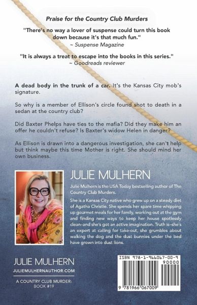 A dead body in the trunk of a car. It's the Kansas City mob's signature. So why is a member of Ellison's circle found shot to death in a sedan at the country club? Did Baxter Phelps have ties to the mafia? Did they make him an offer he couldn't refuse? Is Baxter's widow Helen in danger? As Ellison is drawn into a dangerous investigation, she can't help but think maybe this time Mother is right. She should mind her own business.