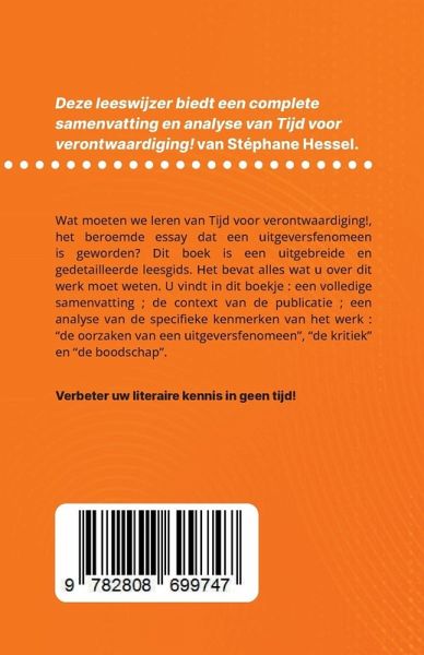 Wat moeten we leren van Tijd voor verontwaardiging!, het beroemde essay dat een uitgeversfenomeen is geworden? Dit boek is een uitgebreide en gedetailleerde leesgids. Het bevat alles wat u over dit werk moet weten. U vindt in dit boekje : - Een volledige samenvatting - De context van de publicatie - Een analyse van de specifieke kenmerken van het werk: de oorzaken van een uitgeversfenomeen, de kritiek en de boodschap Een referentieanalyse om snel de betekenis van het werk te begrijpen.
