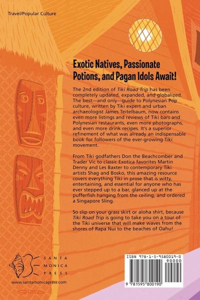 The 2nd edition of Tiki Road Trip has been completely updated, expanded, and globalized. The best--and only--guide to Polynesian pop culture, written by Tiki expert and urban archaeologist James Teitelbaum, now contains even more listings and reviews of Tiki bars and Polynesian restaurants, even more photographs, and even more drink recipes. The International listings have been expanded as well, and the Hawaiian glossary is much more comprehensive. All in all, the second edition of Tiki Road Trip is a superior refinement of what was already an indispensable book for followers of the ever-growing Tiki movement. From Tiki godfathers Don the Beachcomber and Trader Vic to classic Exotica favorites Martin Denny and Les Baxter to contemporary Tiki artists Shag and Bosko, this resource covers everything Tiki in prose that is witty, entertaining, and essential for anyone who has ever stepped up to a bar, glanced up at the pufferfish hanging from the ceiling, and ordered a Singapore Sling. In addition to the exhaustive listings, recipes for classic Tiki cocktails, a glossary of Tiki terms, and resources for buying Tiki goods and artifacts are also included. Reminiscences of famous points of interest that have closed are provided for the completist, for historical perspective, and for those seeking information on the current status of a favorite Tiki site which may have closed. So slip on your grass skirt or Aloha shirt, because Tiki Road Trip is going to take you on a tour of the Tiki universe that will make waves from the shores of Rapa Nui to the beaches of Oahu!