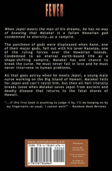 When Jepoi meets the man of his dreams, he has no way of knowing that Malakai is a fallen Hawaiian god condemned to eternity...as a vampire. The pantheon of gods were displeased when Kane, one of their major gods, fell out with his lover Kanaloa, one of the ruling forces over the Hawaiian Islands. Condemned to an eternal earth-bound life as a shape-shifting vampire, Malakai has one chance to break the curse. He must never fall in love and he must never intervene in human problems. All that goes astray when he meets Jepoi, a young male nurse working on the Big Island of Hawaii. Malakai falls for Jepoi and can't resist him, but then all hell literally breaks loose when Malakai saves Jepoi from ancient and deadly disease that returns to the fatal shores of Hawaii.