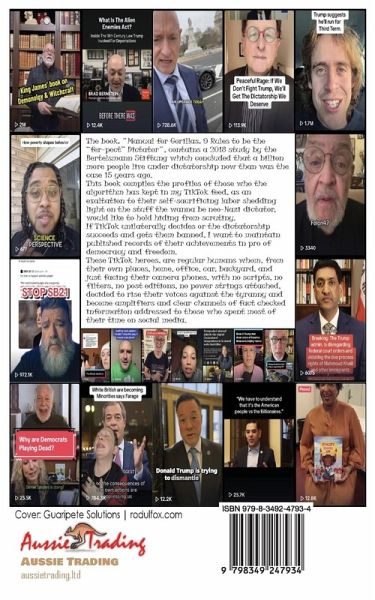 In my book "Manual for Gorillas: 9 Rules to be the "fer-pect" Dictator", I published a 2018 study by the Bertelsmann Stiftung which concluded that a billion more people live under dictatorship now than was the case 15 years ago. The report further warned that growing restrictions on citizens' rights and legal standards were an acute problem in democracies. This book compiles the profiles of those who the algorithm has kept in my TikTok feed, for the last months of 2024 and first trimester of 2025, as an exaltation to their self-sacrificing labor shedding light on the stuff the wanna be neo-Nazi dictator, would like to hold hiding from scrutiny. If TikTok unilaterally decides or the dictatorship succeeds and gets them banned, I want to maintain published records of their achievements in pro of democracy and the education of those who refuse to read books, or just simply find themselves in search of current information and knowledge like me. These TikTok heroes, are regular humans whom, from their own places, home, office, car, backyard, and just facing their camera phones, with no scripts, no filters, no post editions, no power strings attached, decided to rise their voices against the tyranny and become amplifiers and clear channels of fact checked information addressed to those who spent most of their time on social media.