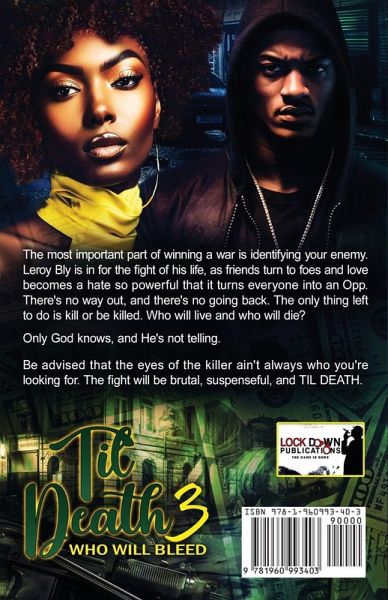 The most important part of winning a war is identifying your enemy. Leroy Bly is in for the fight of his life, as friends turn to foes and love becomes a hate so powerful that it turns everyone into an Opp. There's no way out, and there's no going back. The only thing left to do is kill or be killed. Who will live and who will die? Only God knows, and He's not telling. Be advised that the eyes of the killer ain't always who you're looking for. The fight will be brutal, suspenseful, and TIL DEATH.