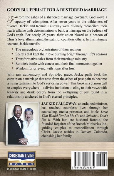 A Marriage God's Way From the ashes of a shattered marriage covenant, God wove a tapestry of redemption. After seven years in the wilderness of divorce, Jackie and Ronnie Calloway were divinely reconciled, their hearts aflame with determination to build a marriage on the bedrock of God's truth. For nearly 25 years, their union blazed as a beacon of Christ's love, illuminating the path for countless others. In this intimate account, Jackie unveils: The miraculous orchestration of their reunion Secrets that kept their love burning bright through life's seasons Transformative tales from their marriage ministry Ronnie's battle with cancer and their final moments together Wisdom for grieving with hope after loss With raw authenticity and Spirit-led grace, Jackie pulls back the curtain on a marriage that rose from the ashes of past pain to become a living testament to God's restoring power. This book is a clarion call to couples everywhere - a divine invitation to cling to their vows with tenacity and drink deeply from the wellspring of joy found in a relationship anchored in God's eternal principles.