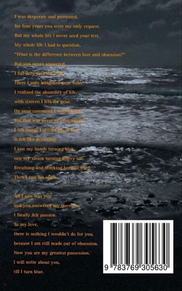 This debut poetry collection is not only about coming of age in our time and the struggles that accompany it. This poetry questions you and this time. It gives you a deep insight into the obsessive feelings of someone who fell for the idea of someone. These words visualize the void our mind can create. They show you the absurdity of life. I was desperate and possessed, for four years you were my only request. But my whole life I never aced your test. My whole life I had to question, what is the difference between love and obsession? But you never answered. I fell deep into the void. There I only imagined your voice. I realised the absurdity of life, with sixteen I felt the price. On your command I would kneel, but that was never to your appeal. I felt things I should never feel. It felt like drowning. I saw my hands turning blue, saw my vision turning blurry too. Breathing and thinking became hard. Then I saw his spark. All I saw was you and you answered my question. I finally felt passion. To my love, there is nothing I wouldn¿t do for you, because I am still made out of obsession. Now you are my greatest possession. I will write about you, till I turn blue.