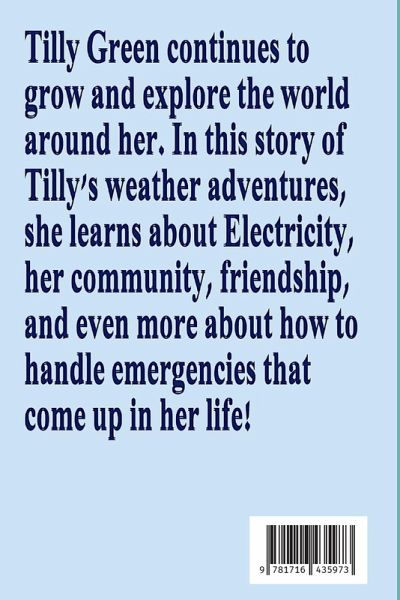 Tilly Green continues to grow and explore the world around her. In this story of Tilly's weather adventures, she learns about Electricity, her community, friendship, and even more about how to handle emergencies that come up in her life!