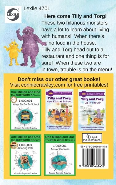 Here come Tilly and Torg! These two hilarious monsters have a lot to learn about living with humans! When there's no food in the house, Tilly and Torg head out to a restaurant and one thing is for sure - with these two, trouble is always on the menu! Sight Words List and Book Quiz included to support beginning readers and ESL students. Tilly and Torg - Out To Eat is Book One of Tilly and Torg's Easy-As-Pie chapter book series which have been called "This generation's Little Golden Books!" An Indie B.R.A.G. Medallion Honoree!