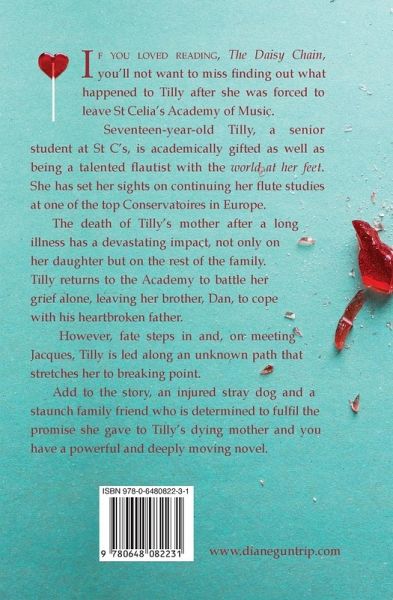 If you loved reading 'The Daisy Chain' you'll not want to miss finding out what happened to Tilly after she was forced to leave St Celia's Academy of Music. Seventeen-year-old Tilly, a senior student at St C's, is academically gifted as well as being a talented flautist with the 'world at her feet'. She has set her sights on continuing her flute studies at one of the top Conservatoires in Europe. The death of Tilly's mother after a long illness has a devastating impact, not only on her daughter but on the rest of the family. Tilly returns to the Academy to battle her grief alone, leaving her brother, Dan, to cope with his heartbroken father. However, fate steps in and, on meeting Jacques, Tilly is led along an unknown path that stretches her to breaking point. Add to the story, an injured stray dog and a staunch family friend who is determined to fulfil the promise she gave to Tilly's dying mother and you have a powerful and deeply moving novel.