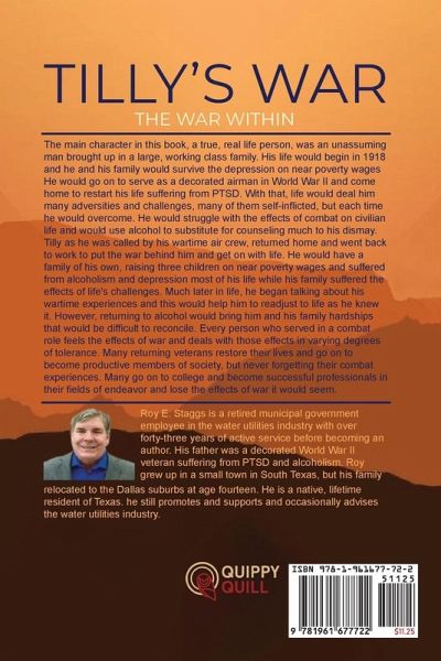 The main character in this book, a true, real-life person, was an unassuming man brought up in a large, working class family. His life would begin in 1918 and he and his family would survive the depression on near poverty wages. He would go on to serve as a decorated airman in World War II and come home to restart his life suffering from PTSD. With that, life would deal him many adversities and challenges, many of them self-inflicted, but each time he would overcome. He would struggle with the effects of combat on civilian life and would use alcohol to substitute for counseling much to his dismay. Tilly as he was called by his wartime air crew, returned home and went back to work to put the war behind him and get on with life. He would have a family of his own, raising three children on near poverty wages and suffered from alcoholism and depression most his life while his family suffered the effects of life's challenges. Much later in life, he began talking about his wartime experiences and this would help him to readjust to life as he knew it. However, returning to alcohol would bring him and his family hardships that would be difficult to reconcile. Every person who served in a combat role feels the effects of war and deals with those effects in varying degrees of tolerance. Many returning veterans restore their lives and go on to become productive members of society, but never forgetting their combat experiences. Many go on to college and become successful professionals in their fields of endeavor and lose the effects of war it would seem.