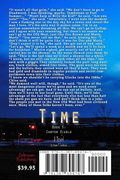 "It wasn't all that grim," she said. "We don't have to go to Deadwood. I was thinking, maybe, Tombstone or Fort Sumner..." "Wyatt Earp or Billy the Kid?" he said. "Are you nuts?" "Yes," she said. "Absolutely. I went nuts the moment I saw a flaming star in the day sky hit a tower and reveal the man I love. It's the only way it makes sense. I'm in an asylum somewhere dreaming all this." They certainly looked the part: long dusters, black clothes, armed like tanks. The guns were too new, and the bullets they carried were all they'd have. "I know we shouldn't be carrying Glocks into the 1880s," Chloe said. "We damned well will, though," he said. "It's one of the most dangerous places we've gone and we need every advantage we can get. If we run out of bullets, we'll have to use local guns. We'll take advantage of the fact that everybody else has less than half the shots we have. Don't think this is a joke. The people you met in the New Old West had been civilized once. Many of these folks haven't been, ever."