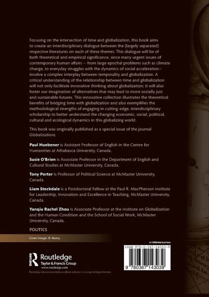 Paul Huebener is Assistant Professor of English in the Centre for Humanities at Athabasca University, Canada. He is the author of Timing Canada: The shifting politics of time in Canadian literary culture (2015). Susie O¿Brien is Associate Professor in the Department of English and Cultural Studies at McMaster University, Canada. Her work has been published in Canadian Literature, Postcolonial Text, Modern Fiction Studies , Cultural Critique, Interventions, Mosaic, South Atlantic Quarterly, The Review of Education, Pedagogy and Cultural Studies. Tony Porter is Professor of Political Science at McMaster University, Canada. His most recent books are Transnational Financial Regulation after the Financial Crisis (2014) and Transnational Financial Associations and the Governance of Global Finance (2013, with Heather McKeen-Edwards). Liam Stockdale is a Postdoctoral Fellow at the Institute for Innovation and Excellence in Teaching and Learning, McMaster University, Canada. He is the author of Taming an Uncertain Future: Temporality, Sovereignty, and the Politics of Anticipatory Governance (2016). Yanqiu Rachel Zhou is Associate Professor at the Institute on Globalization and the Human Condition, McMaster University, Canada. She has widely published in the fields of transnationalism, health, and social policy in edited books and in various peer-reviewed journals, including Journal of Aging Studies, Health, Time and Society, and Social Science and Medicine.