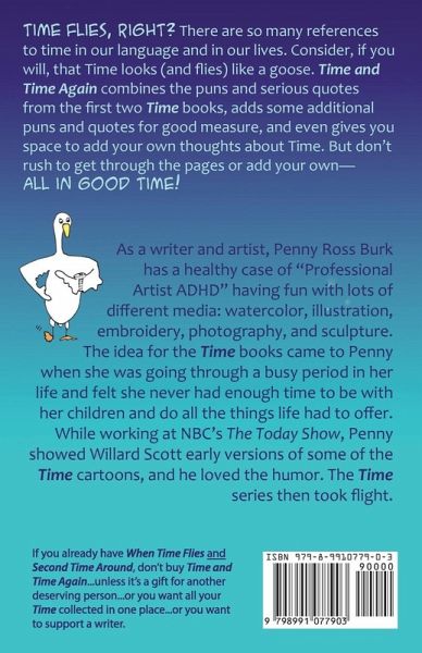 Time flies, right? There are many references to time in our language and our lives. Consider, if you will, that Time looks (and flies) like a goose. Time and Time Again combines the puns and serious quotes from the first two Time books, adds some additional puns and quotes for good measure, and even gives you space to add your thoughts about Time. But don't rush to get through the pages or add your own-All in Good Time!Cle