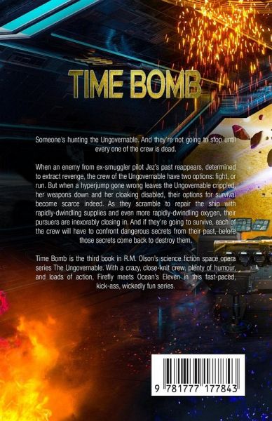 Someone's hunting the Ungovernable. And they're not going to stop until every one of the crew is dead. When an enemy from ex-smuggler pilot Jez's past reappears, determined to extract revenge, the crew of the Ungovernable have two options: fight, or run. But when a hyperjump gone wrong leaves the Ungovernable crippled, her weapons down and her cloaking disabled, their options become scarce indeed. As they scramble to repair the ship with rapidly-dwindling supplies and even more rapidly-dwindling oxygen, their pursuers are inexorably closing in. And if they're going to survive, each of the crew will have to confront dangerous secrets from their past, before those secrets come back to destroy them. Time Bomb is the third book in R.M. Olson's science fiction space opera series The Ungovernable. With a crazy, close-knit crew, plenty of humour, and loads of action, Firefly meets Ocean's Eleven in this fast-paced, kick-ass, wickedly fun series.