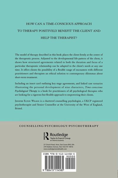Counselors and psychotherapists are divided about the morality and efficacy of short-term psychotherapy and counseling. The model of therapy described Time-Conscious Psychological Therapy is based on flexible adjustment to the life pattern