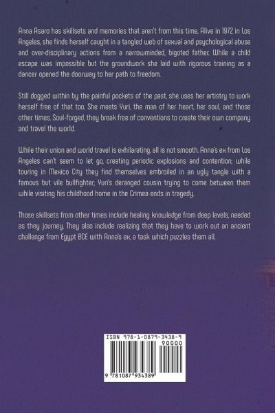 Anna Asaro has skillsets and memories that aren't from this time. Alive in 1972 in Los Angeles, she finds herself caught in a tangled web of sexual and psychological abuse from a narrowminded, bigoted father. While still a child escape was impossible but the groundwork she laid with rigorous training as a dancer opened the doorway to her path to freedom. Still dogged within by the painful pockets of the past, she uses her artistry to work herself free of that too. She meets Yuri, the man of her heart, her soul, and those other times. Soul-forged, they break free of conventions to create their own company and travel the world. While their union and world travel is exhilarating, all is not smooth. Anna's ex from Los Angeles can't seem to let go, creating periodic explosions and contention; while touring in Mexico City they find themselves embroiled in an ugly tangle with a famous but vile bullfighter; Yuri's deranged cousin trying to come between them while visiting his childhood home in the Crimea ends in tragedy. Those skillsets from other times include healing knowledge from deep levels, needed as they journey. They also include realizing that they have to work out an ancient challenge from Egypt BCE with Anna's ex, a task which puzzles them all.